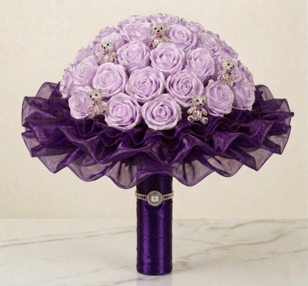 Tato kytice v sobě nese nespoutanost života. Ručně vytvořená z atlasových stuh a jemné organzy, působí živě, ale nikdy nezvadne. Kytice se skládá z 31 květů - 24 rozkvetlých a 7 poupat, doplněných o tři vrstvy organzy ve tvaru bohaté kaskády. Její průměr je přibližně 45 cm, výška 35 cm. Je to kytice, která potěší a rozzáří pohled každého obdarovaného. Je ideální jako dárek pro radost, dekorace, nebo symbol osobního okamžiku. JEDINEČNÝ ORIGINÁL.