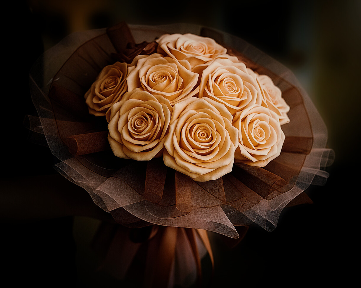 Tato kytice v sobě nese nespoutanost života. Ručně vytvořená z atlasových stuh a jemné organzy, působí živě, ale nikdy nezvadne. Kytice se skládá z 11 květů - 7 rozkvetlých a 4 poupat, doplněných o tři vrstvy organzy ve tvaru bohaté kaskády. Její průměr je přibližně 50 - 60 cm, výška 40 cm. Uvnitř kytice se nacházejí jemná světýlka, která po rozsvícení vytvářejí teplé a útulné světlo. Pro ještě příjemnější atmosféru jsou do kytice vloženy papírky s jemným esenciálním olejem, který kytici dodá lehkou vůni a pocit domova.Je to kytice, která potěší, rozzáří i provoní každý prostor - ideální jako dárek pro radost, dekorace, nebo symbol osobního okamžiku. Pouze jeden kus. Vše je originál.