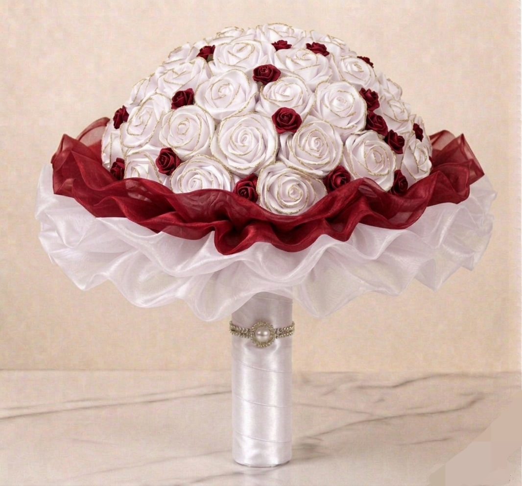 Tato kytice v sobě nese nespoutanost života. Ručně vytvořená z atlasových stuh, které se následně tepelně opracovávají a jemné organzy, působí živě, ale nikdy nezvadne. Kytice se skládá z 31 květů - 24 rozkvetlých a 7 poupat, doplněných o tři vrstvy organzy ve tvaru bohaté kaskády. Její průměr je přibližně 45 cm, výška 35 cm. Je to kytice, která potěší a rozzáří pohled každého obdarovaného. Je ideální jako dárek pro radost, dekorace, nebo symbol osobního okamžiku. JEDINEČNÝ ORIGINÁL.