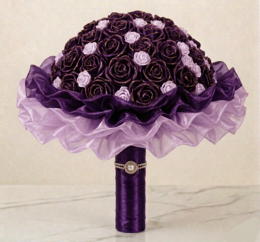 Tato kytice v sobě nese nespoutanost života. Ručně vytvořená z atlasových stuh, které se následně tepelně opracovávají a jemné organzy, působí živě, ale nikdy nezvadne. Kytice se skládá z 31 květů - 24 rozkvetlých a 7 poupat, doplněných o tři vrstvy organzy ve tvaru bohaté kaskády. Její průměr je přibližně 45 cm, výška 35 cm. Je to kytice, která potěší a rozzáří pohled každého obdarovaného. Je ideální jako dárek pro radost, dekorace, nebo symbol osobního okamžiku. JEDINEČNÝ ORIGINÁL.