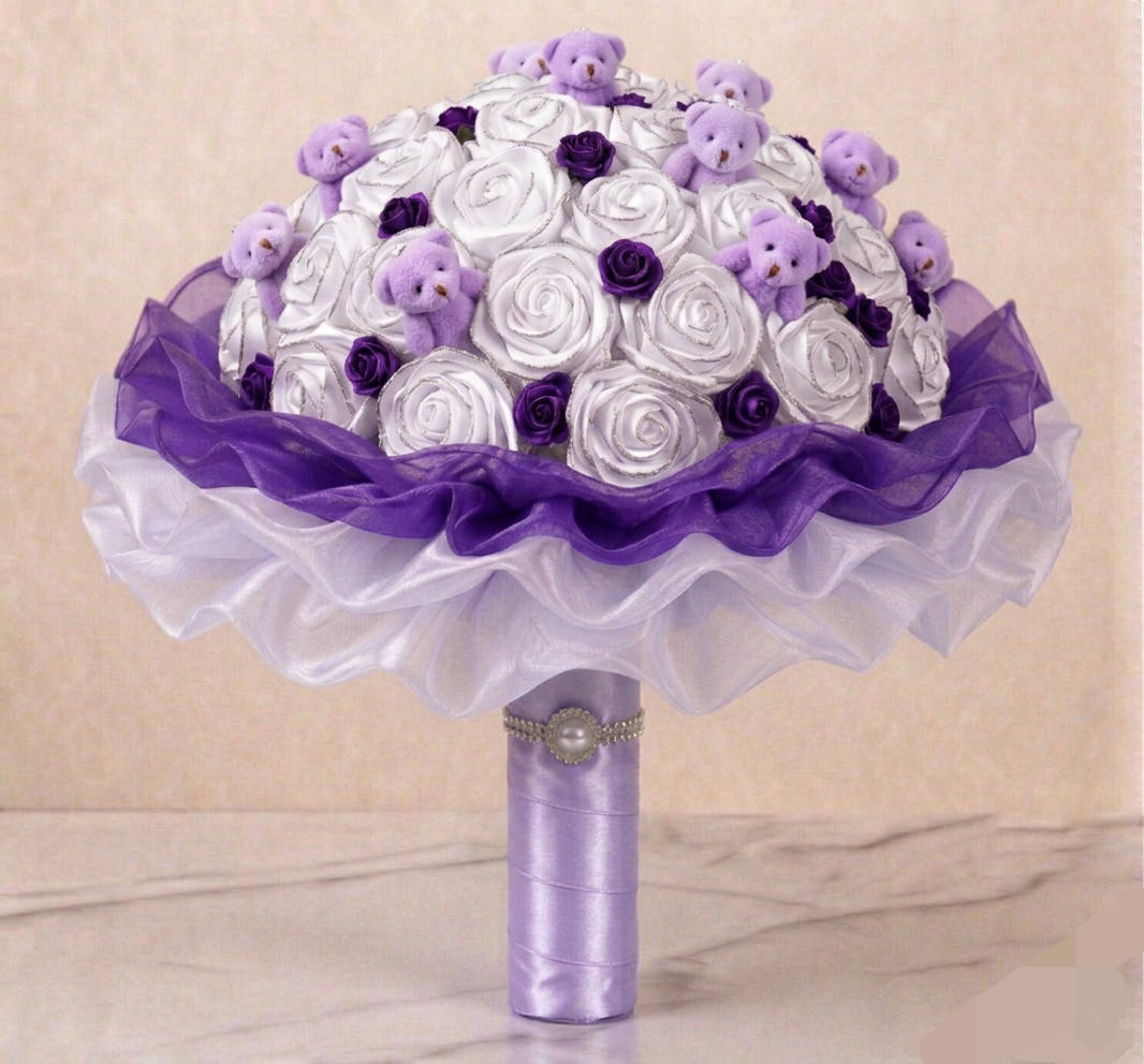 Tato kytice v sobě nese nespoutanost života. Ručně vytvořená z atlasových stuh, které se následně tepelně opracovávají a jemné organzy, působí živě, ale nikdy nezvadne. Kytice se skládá z 31 květů - 24 rozkvetlých a 7 poupat, doplněných o tři vrstvy organzy ve tvaru bohaté kaskády. Její průměr je přibližně 45 cm, výška 35 cm. Je to kytice, která potěší a rozzáří pohled každého obdarovaného. Je ideální jako dárek pro radost, při narození miminka, dekorace, nebo symbol osobního okamžiku. JEDINEČNÝ ORIGINÁL.