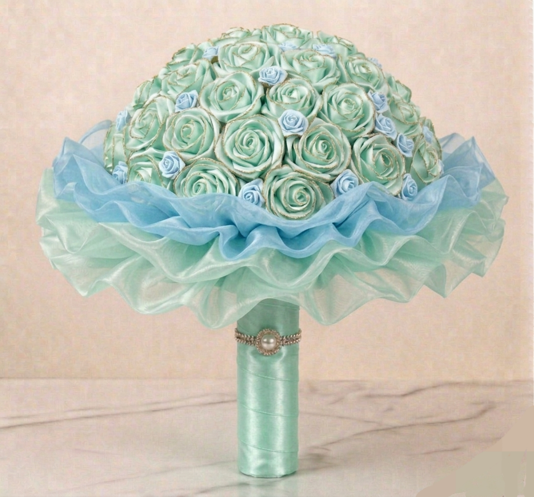 Tato kytice v sobě nese nespoutanost života. Ručně vytvořená z atlasových stuh, které se následně tepelně opracovávají a jemné organzy, působí živě, ale nikdy nezvadne. Kytice se skládá z 31 květů - 24 rozkvetlých a 7 poupat, doplněných o tři vrstvy organzy ve tvaru bohaté kaskády. Její průměr je přibližně 45 cm, výška 35 cm. Je to kytice, která potěší a rozzáří pohled každého obdarovaného. Je ideální jako dárek pro radost, dekorace, nebo symbol osobního okamžiku. JEDINEČNÝ ORIGINÁL.