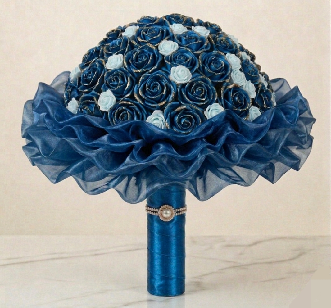 Tato kytice v sobě nese nespoutanost života. Ručně vytvořená z atlasových stuh, které se následně tepelně opracovávají a jemné organzy, působí živě, ale nikdy nezvadne. Kytice se skládá z 31 květů - 24 rozkvetlých a 7 poupat, doplněných o tři vrstvy organzy ve tvaru bohaté kaskády. Její průměr je přibližně 45 cm, výška 35 cm. Je to kytice, která potěší a rozzáří pohled každého obdarovaného. Je ideální jako dárek pro radost, dekorace, nebo symbol osobního okamžiku. JEDINEČNÝ ORIGINÁL.