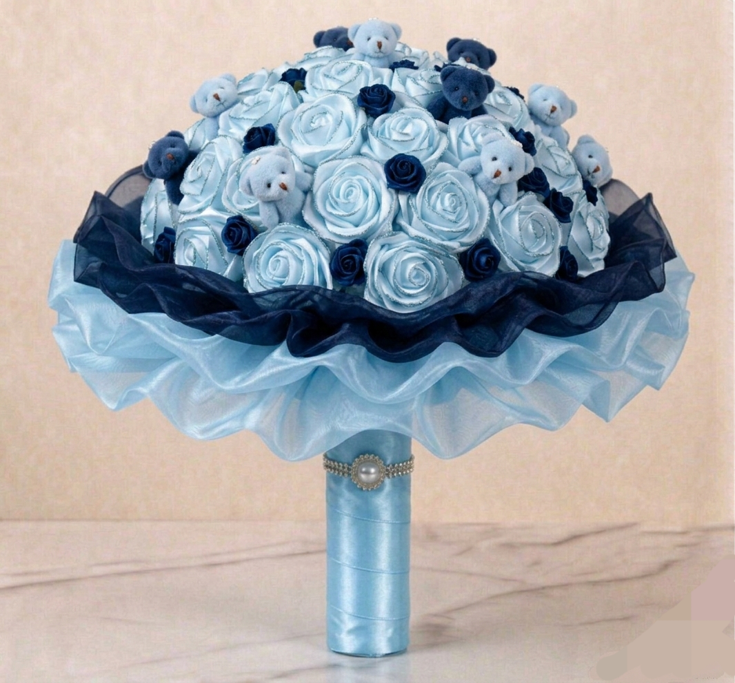 Tato kytice v sobě nese nespoutanost života. Ručně vytvořená z atlasových stuh, které se následně tepelně opracovávají a jemné organzy, působí živě, ale nikdy nezvadne. Kytice se skládá z 31 květů - 24 rozkvetlých a 7 poupat, doplněných o tři vrstvy organzy ve tvaru bohaté kaskády. Její průměr je přibližně 45 cm, výška 35 cm. Je to kytice, která potěší a rozzáří pohled každého obdarovaného. Je ideální jako dárek pro radost, při narození miminka, dekorace, nebo symbol osobního okamžiku. JEDINEČNÝ ORIGINÁL.